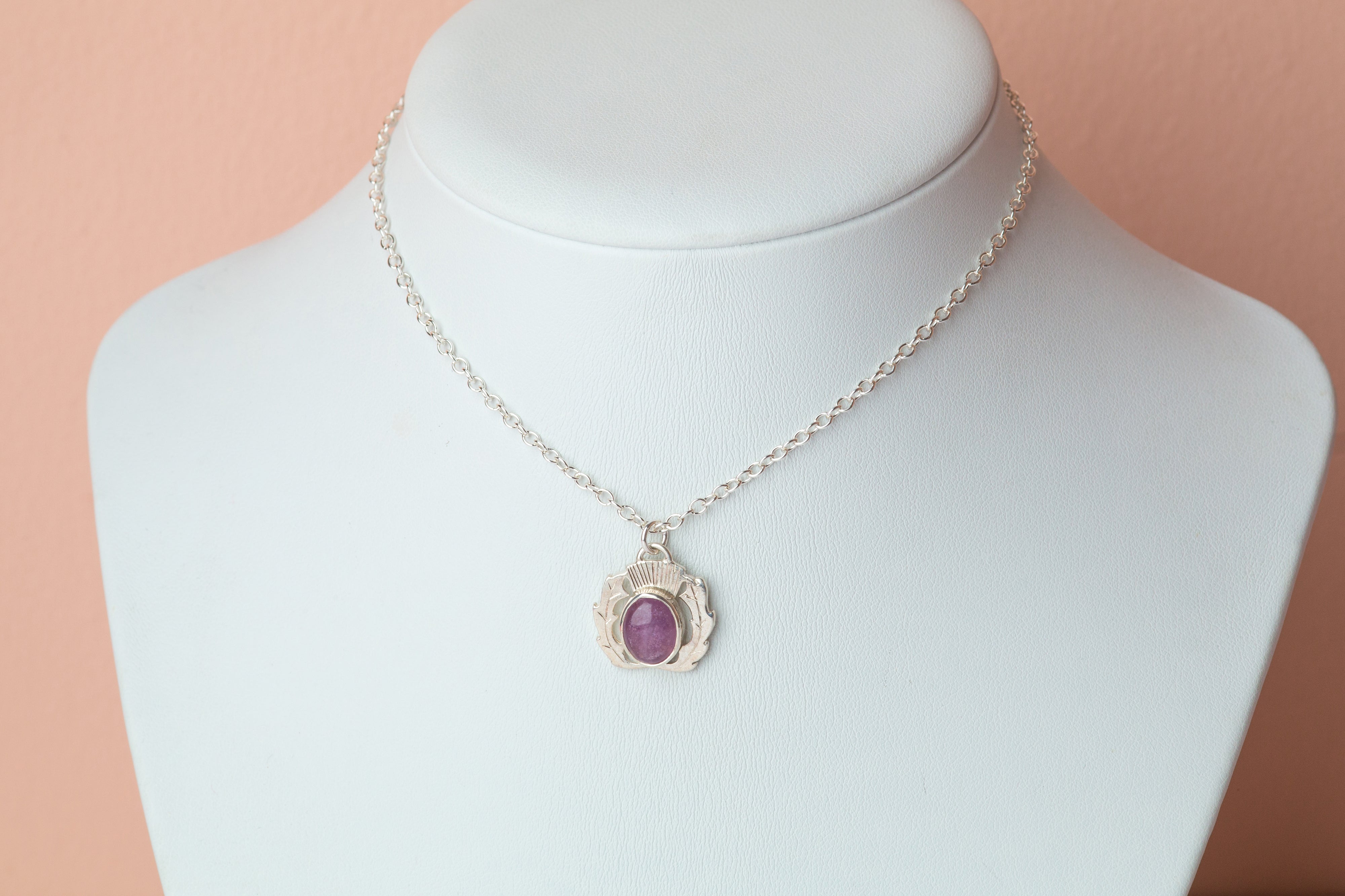 Embrace the rugged beauty of the Highlands with this Amethyst Thistle Necklace, a timeless tribute to Scottish heritage.