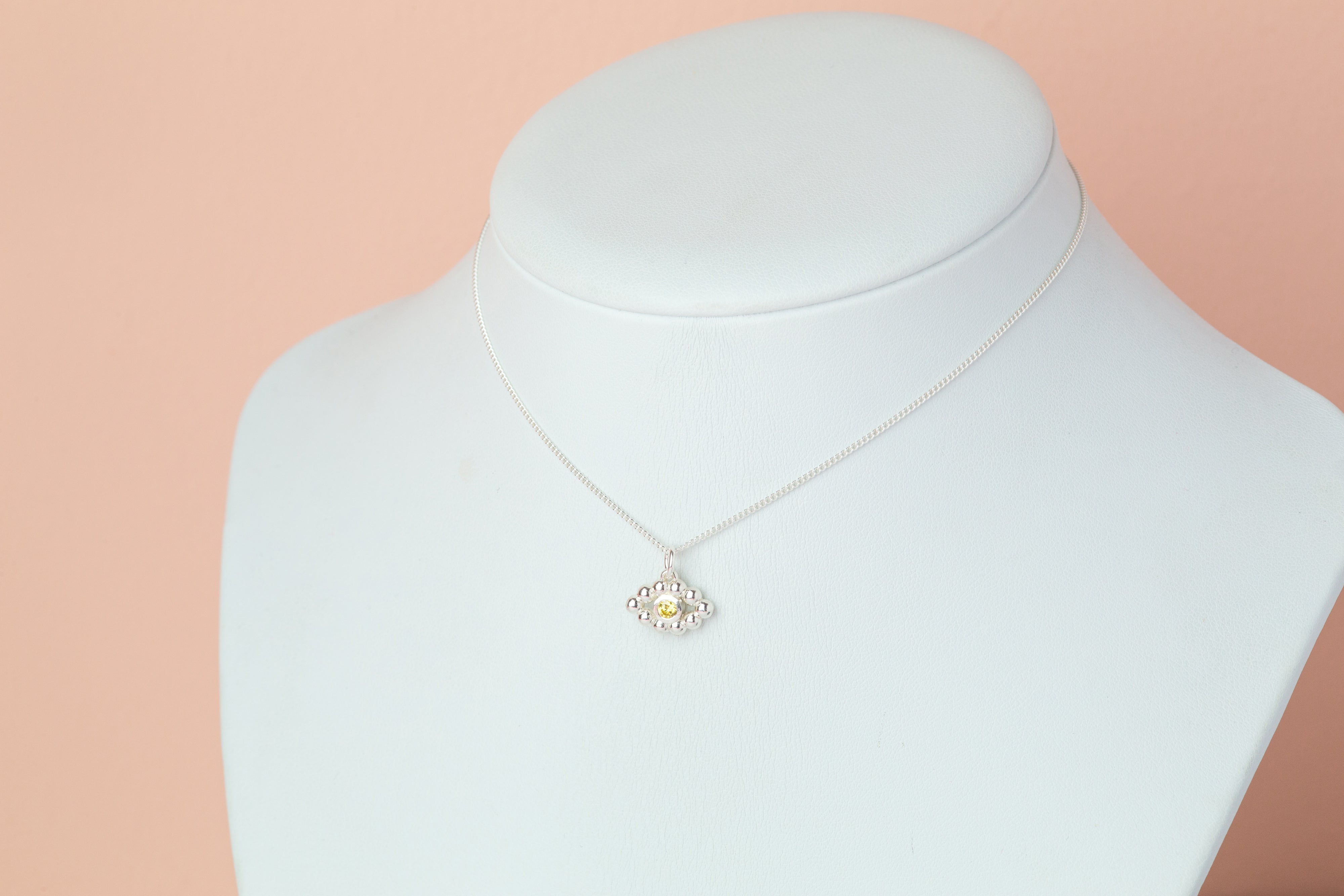 The eye's centre is set with a brilliant citrine cubic zirconia gemstone, which offers a striking pop of colour and shine.